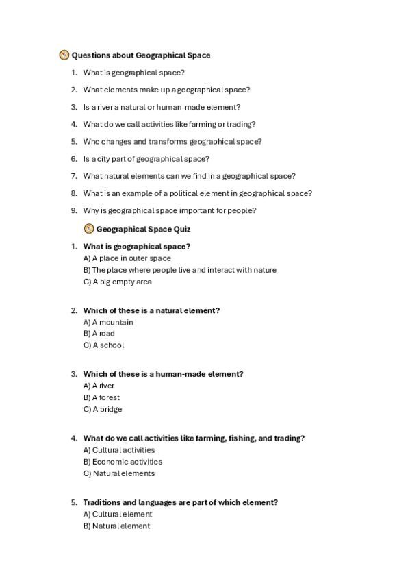 Preguntas y test (tema 3 - Geographical Space and its didactic proposal)