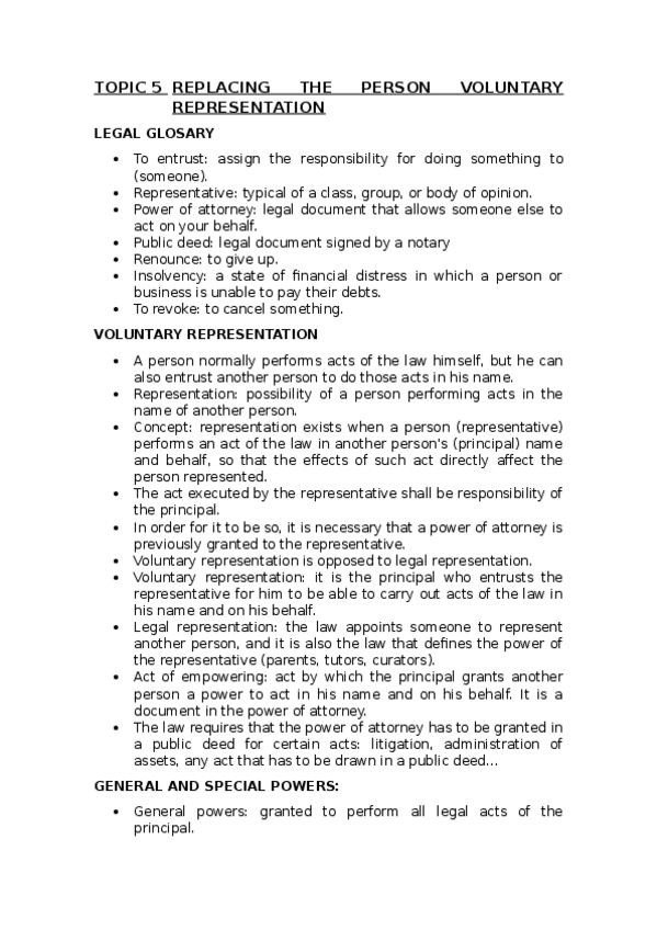 He publicado nuevos apuntes de 1º Civil Law: TOPIC-5-REPLACING-THE-PERSON-VOLUNTARY-REPRESENTATION.docx