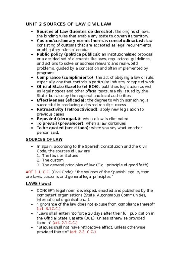 He publicado nuevos apuntes de 1º Civil Law: UNIT-2-SOURCES-OF-LAW-CIVIL-LAW.docx