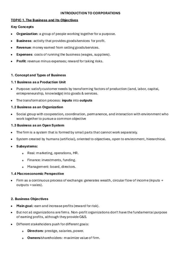 Apuntes Introduction to corporations