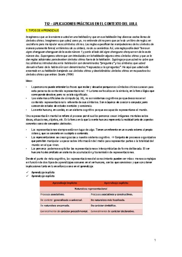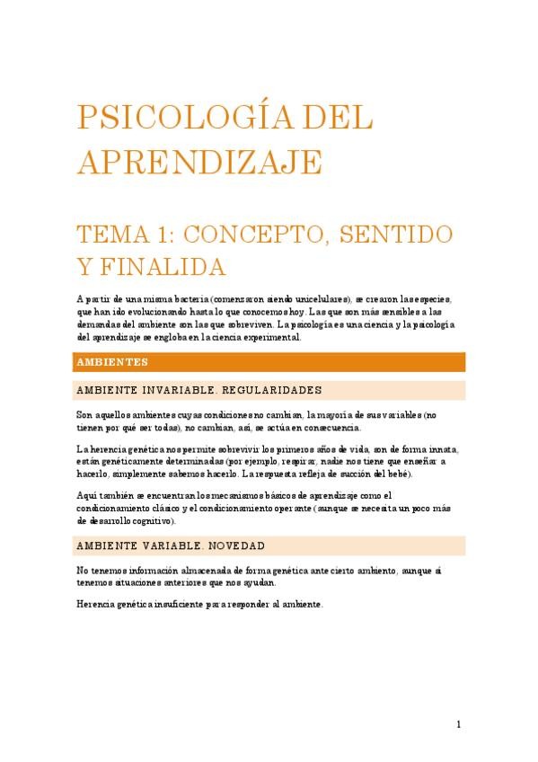 Apuntes de psicologia del aprendizaje del tema 1 al 12 según las diapositivas de Pablo Rodríguez Gómez de la URJC añadiendo la información adicional que dice en clase
