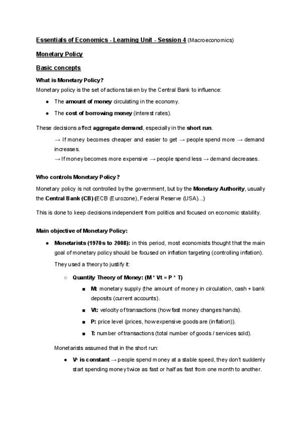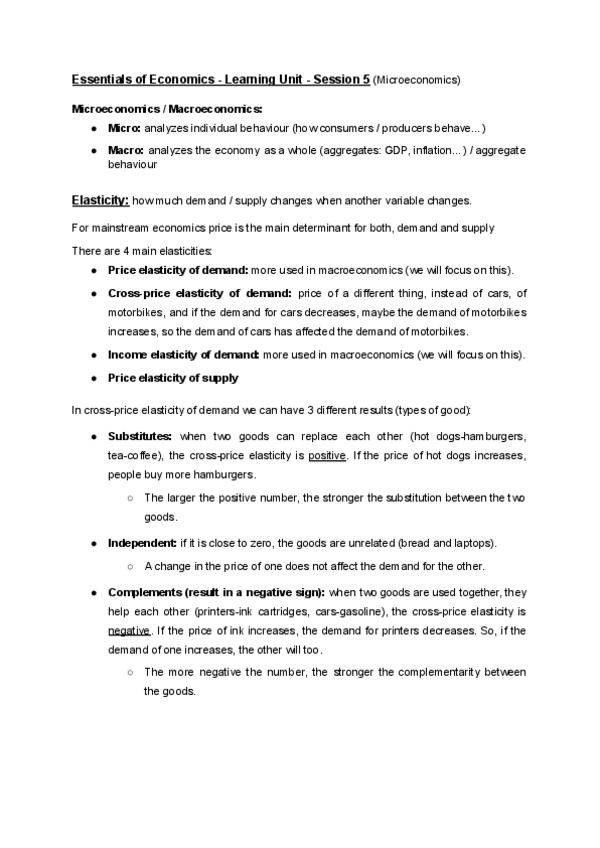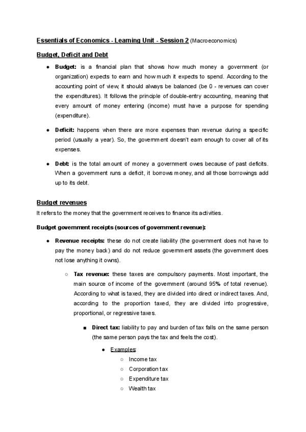 Notes: - Unit 1: What’s economics? - Unit 2: Markets and competition - Unit 3: Market failures and state intervention - Unit 4: Public sector and public budget - Unit 5: Aggregate magnitudes and Fiscal policy - Unit 6: Employment and unemployment - Unit 6