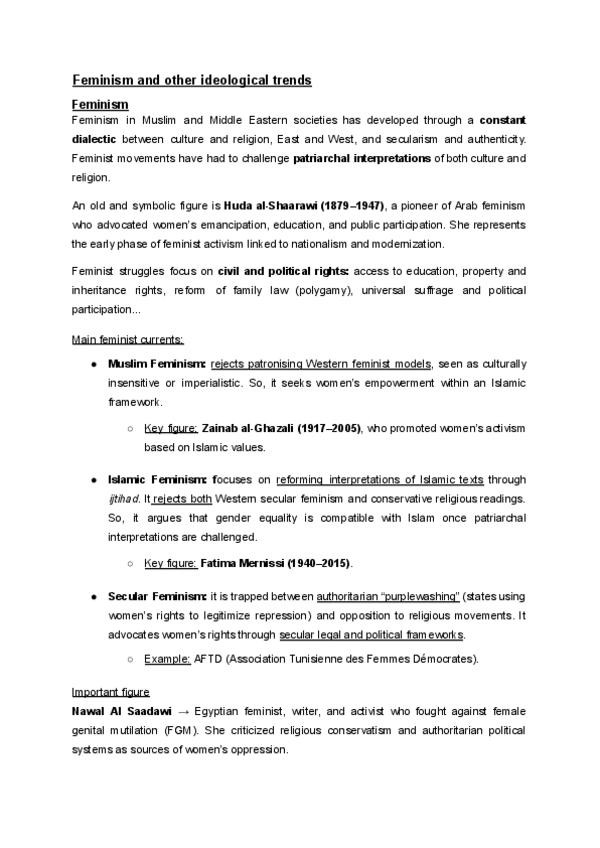 Notes: - Presentation 1 - Ideology and Politics in the Mediterranean and Middle East: between Convergence and Confrontation - Presentation 2 - Non-Western Political Philosophies: The Arab World - Presentation 3 - Islamism - Presentation 4 - Feminism and o