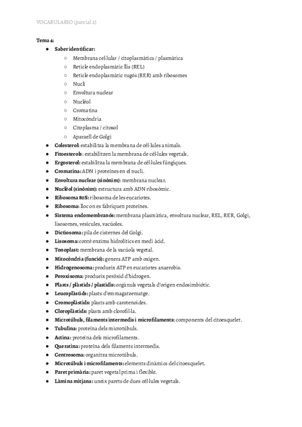 vocabulario parcial 2 (tema 4 y tema 5 parte 1 y 2) y preguntas que suelen entrar en el examen