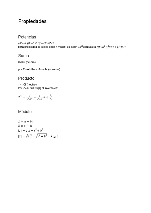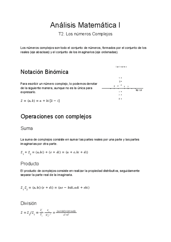 Notación Binómica, Operaciones con complejos, Propiedades, Radianes, Conversión de Binómica a Polar, Operaciones en Notación polar, Forma exponencial.