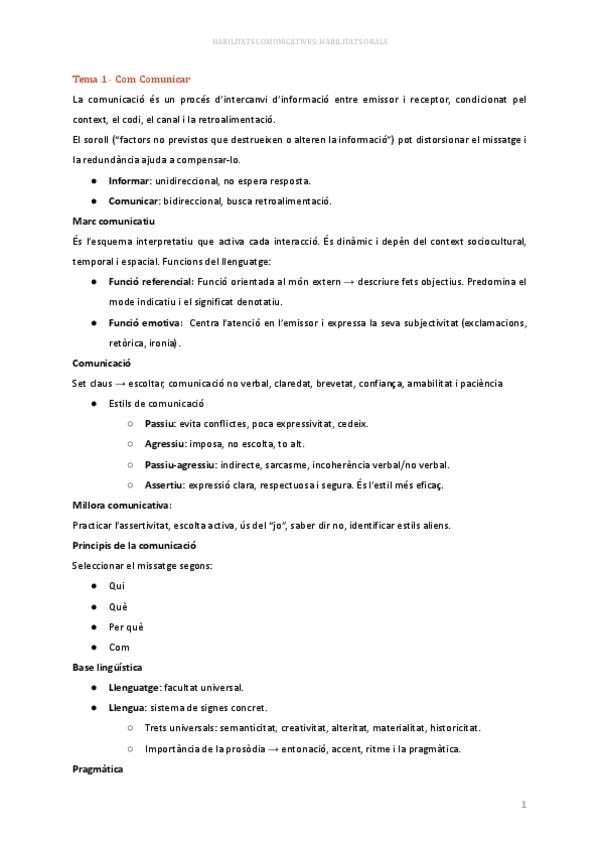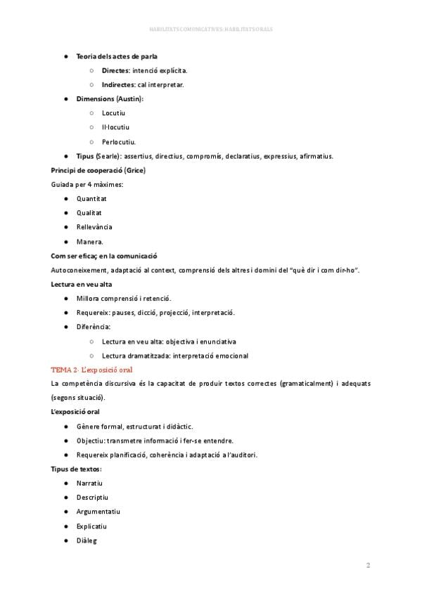 Resum esquemàtic i clar del temari de B2. Habilitats Orals. Inclou comunicació, estils comunicatius, pragmàtica, actes de parla, exposició oral i bases de l’argumentació. Ideal per estudiar ràpid, preparar exàmens i entendre els conceptes essencials.