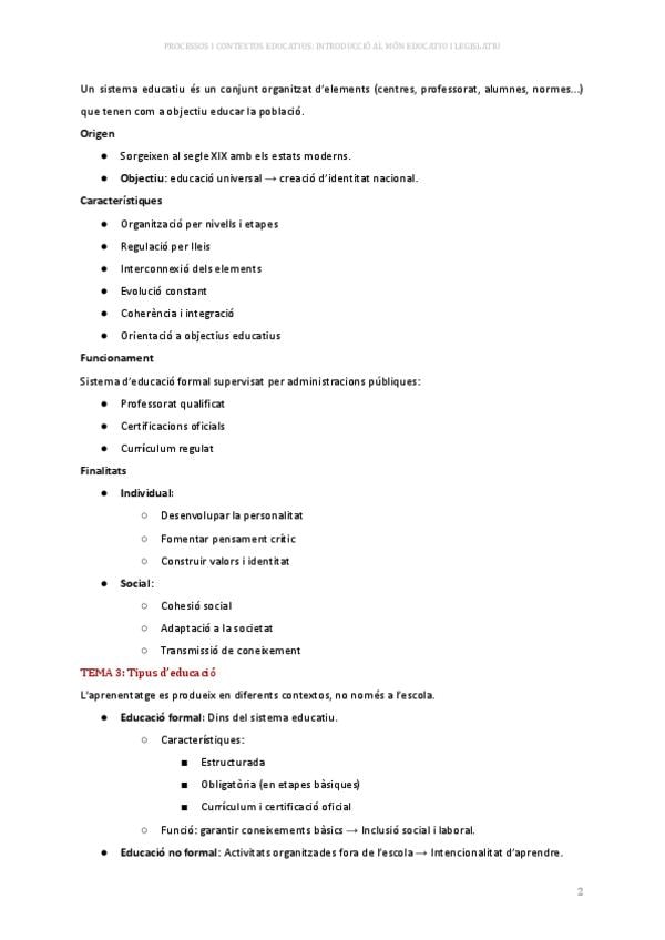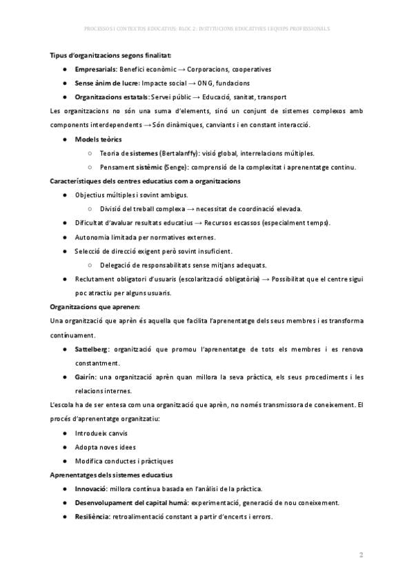 Resum clar i estructurat del bloc 2 (Institucions educatives) de l’assignatura de processos i contextos educatius. Ideal per estudiar ràpid, entendre els conceptes essencials i preparar exàmens o treballs.