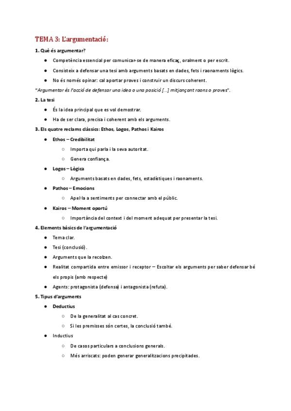 Resum complert del tema 3. L'argumnetació - Mòdul d'habilitats orals