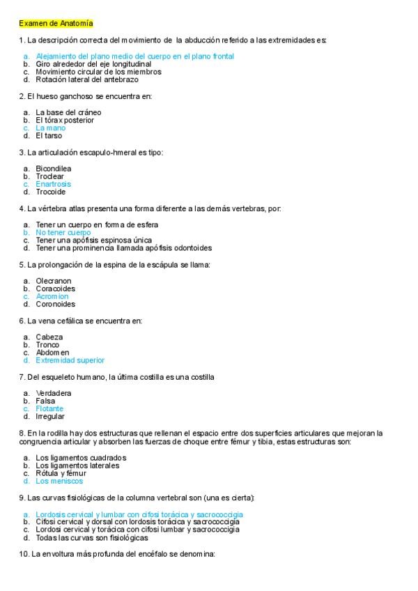 EXAMEN DE ANATOMIA otros años