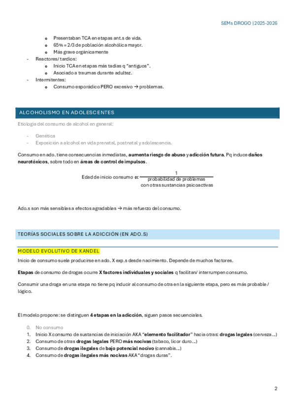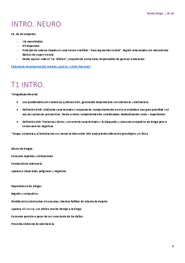 Apuntes de la teoría de la optativa Drogodependències 25-26. Habrá muchas faltas y está escrito modo cavernícola (faltan palabras) para hacerlo más conciso. Está organizado de la manera más lógica para mí. ¡Suerte con la asignatura!