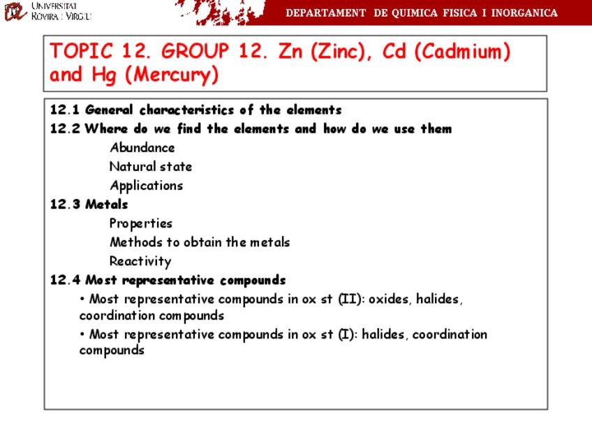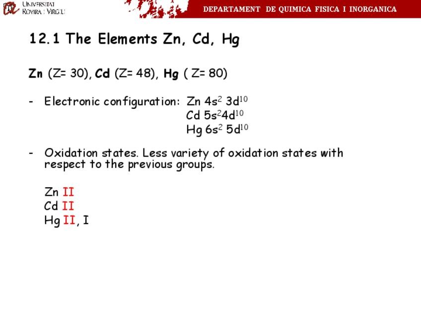 He publicado nuevos apuntes de 2º Quimica Inorganica II: 12.-Zn-Cd-and-Hg.pdf