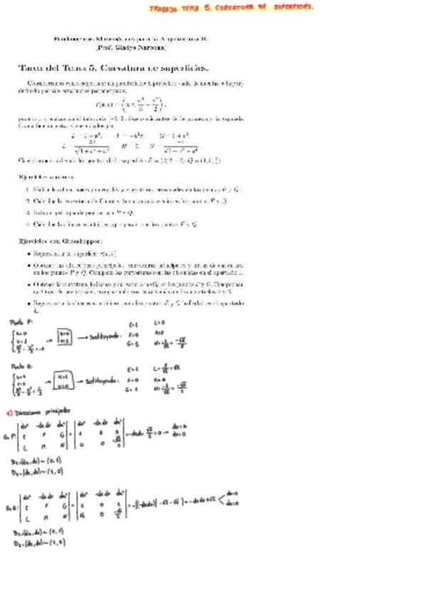 Trabajo resuelto a mano del Tema 5 de Matemáticas II