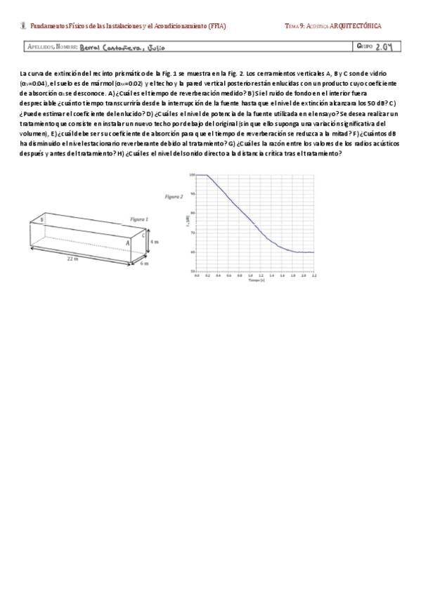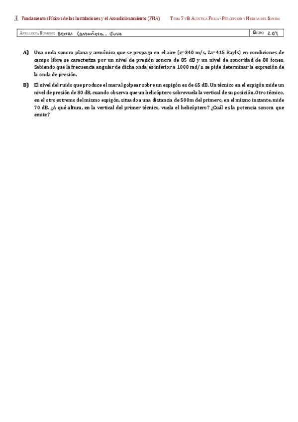 He publicado nuevos ejercicios de 2º Fundamentos Físicos de las Instalaciones y el Acondicionamiento: EjerciciopropuestoACUSTICAArquit-24-25.pdf