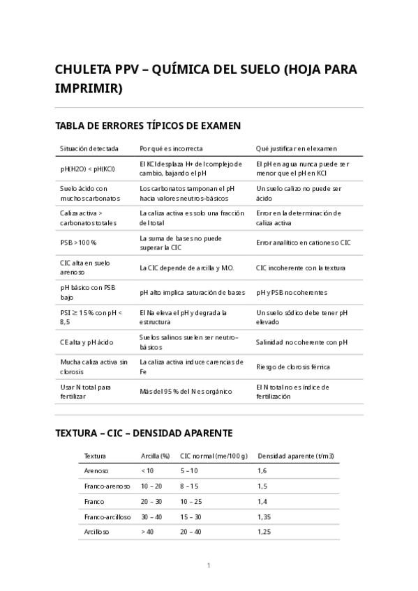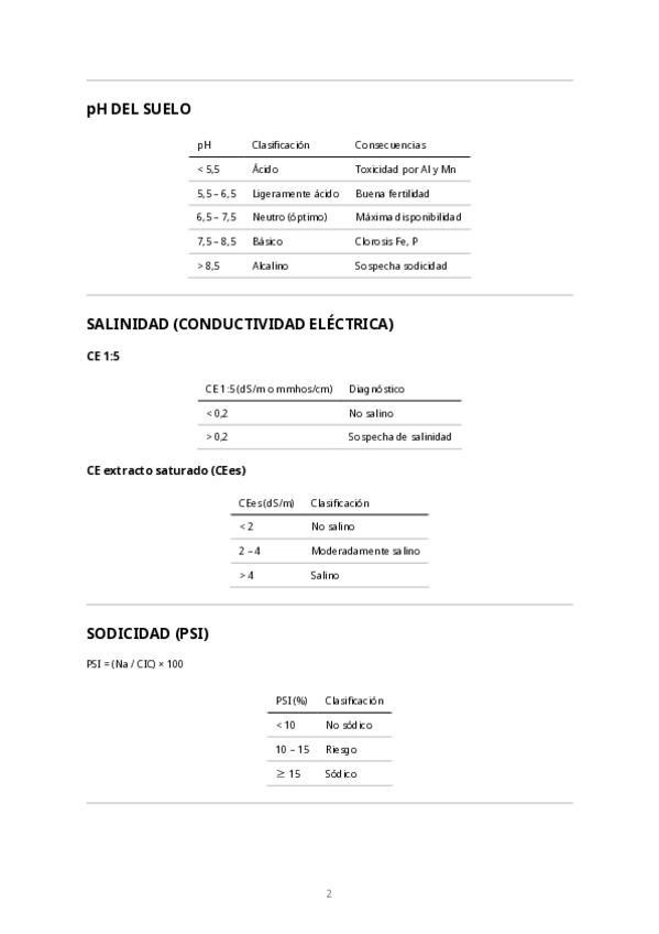 He hecho este documento con los valores de referencia que hay que tener en cuenta pàra los ejercicios de quimica del suelo (correspondientes al segundo parcial de PPV). Tambien incluye una tabla donde explica todas las contradicciones que pueden aparecer.