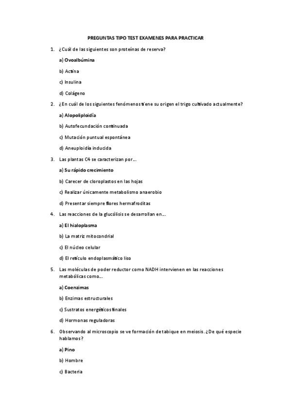 Algunas preguntas tipo test para repasar exámenes