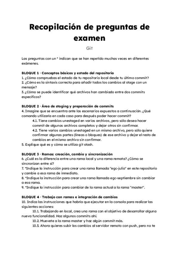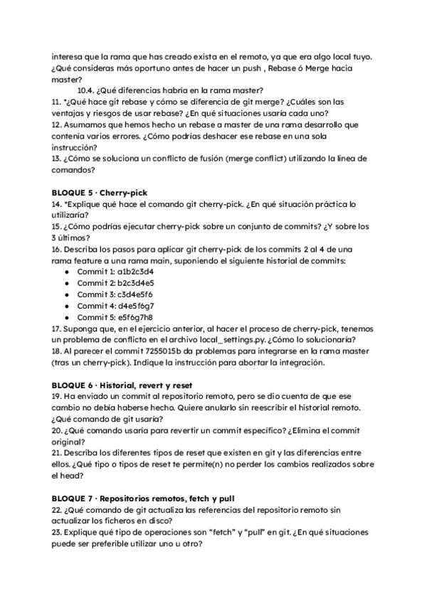 Recopilación de preguntas de examen resueltas sobre Git. Están copiadas y pegadas de los exámenes que los profesores han publicado en la wiki, pero organizadas, resueltas y sin repetirse.
