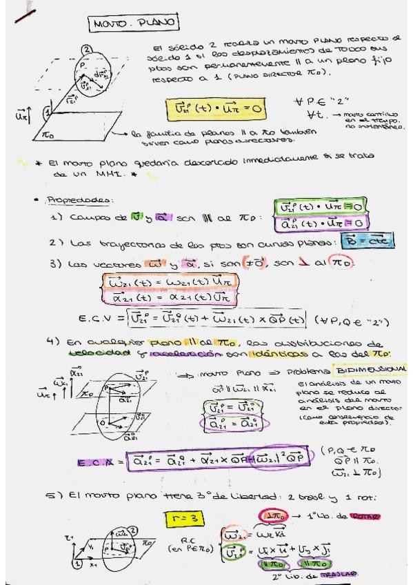 Apuntes y formularios del cuatrimestre de Física I: Dinámica del punto, cinemática del sólido rígido, movimiento relativo y movimiento plano.