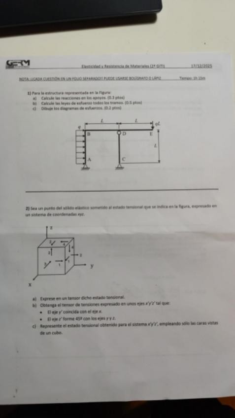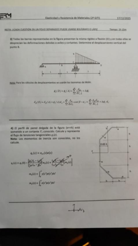 He publicado nuevos examenes de 2º Elasticidad y Resistencia de Materiales: Primer-Parcial-25-26-Resuelto.pdf