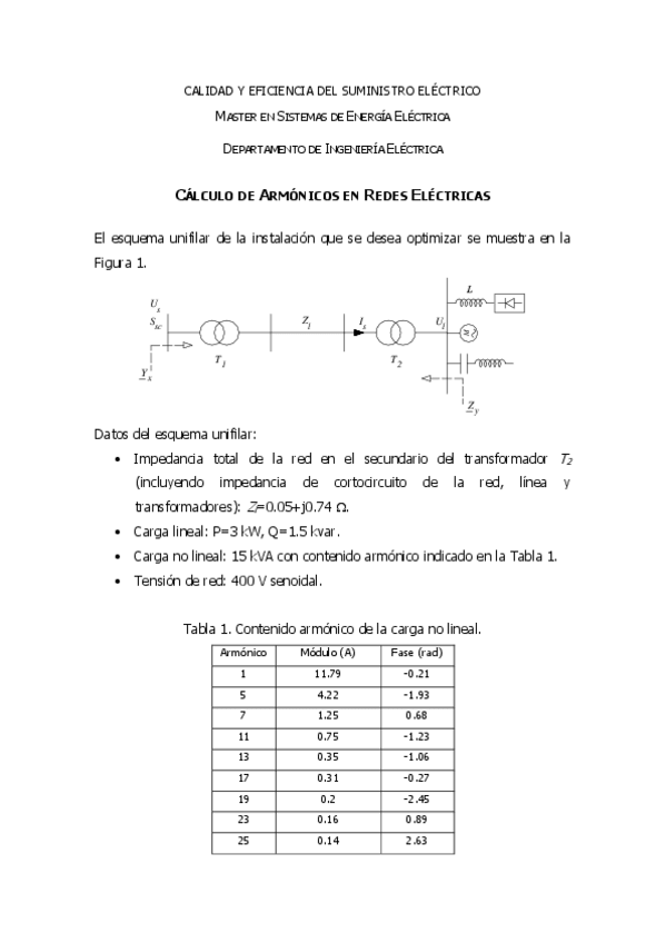 He publicado nuevos ejercicios de 1º Calidad y Eficiencia del Suministro Eléctrico: ejercicio-armonicos.pdf