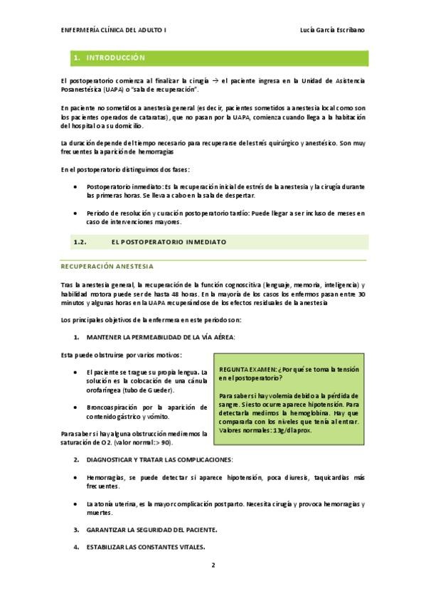 He publicado nuevos apuntes de 2º Enfermería Clínica del Adulto I: Paciente-postoperatorio.pdf