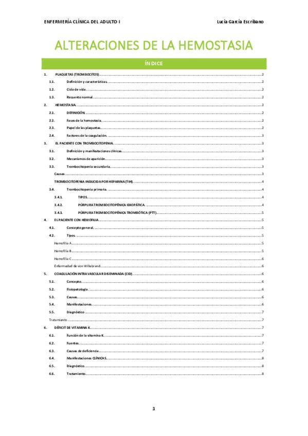 He publicado nuevos apuntes de 2º Enfermería Clínica del Adulto I: ALTERACIONES-DE-LA-HEMOSTASIA.pdf