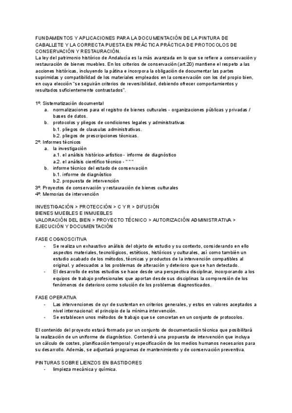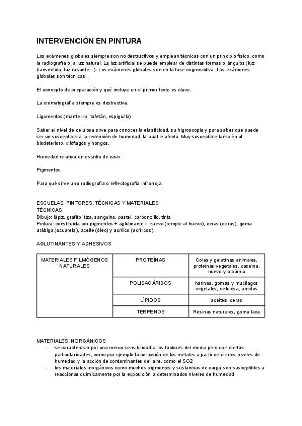 Resumen de conceptos más importantes de los temas : - 0. Introducción. Fundamentos. - 1. Naturaleza química de los materiales pictóricos-aglutinantes y barnices - 2. Disolventes