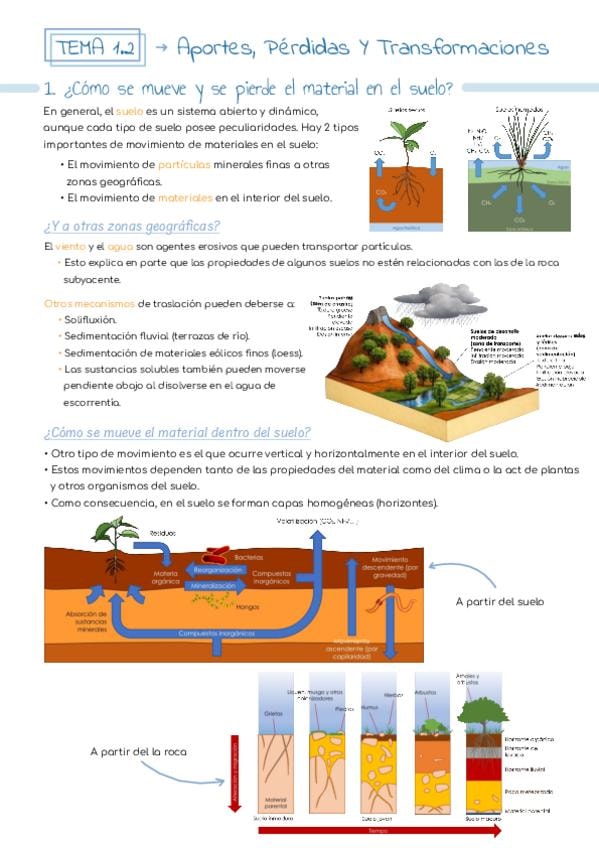 Apuntes del tema 1.2 de edafología, “ Aportes, Pérdidas Y Transformaciones”.