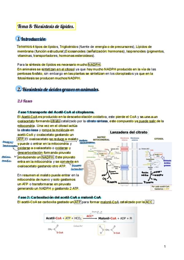 Adjunto apuntes de los temas de bioquímica II con imágenes explicativas.