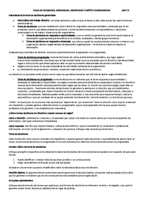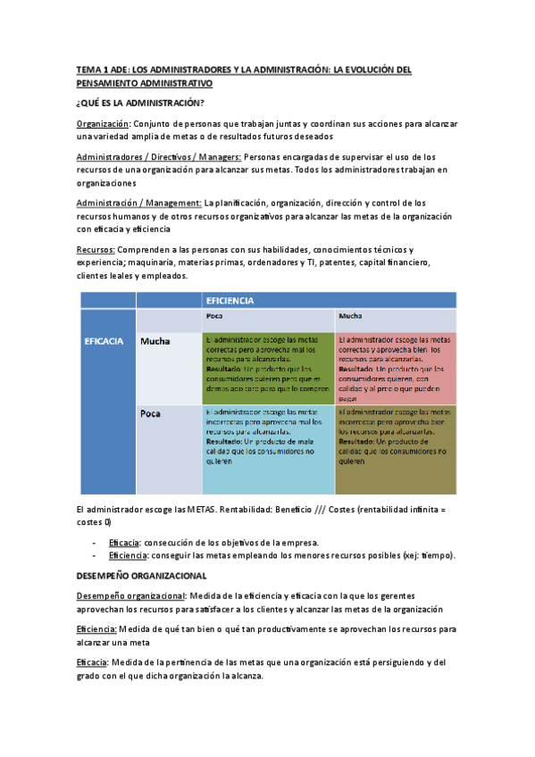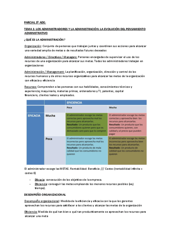 TEMARIO COMPETO de Administración de empresas (Temas 1-8) La segunda parte esta en mi perfil en ADE de marketing