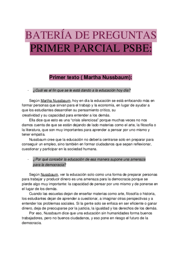 Batería de preguntas del tema 1 del primer parcial de la asignatura Procesos Sociales Básicos en la Educación (Centrado en Filosofía), impartida por el profesor George León Kabarity.