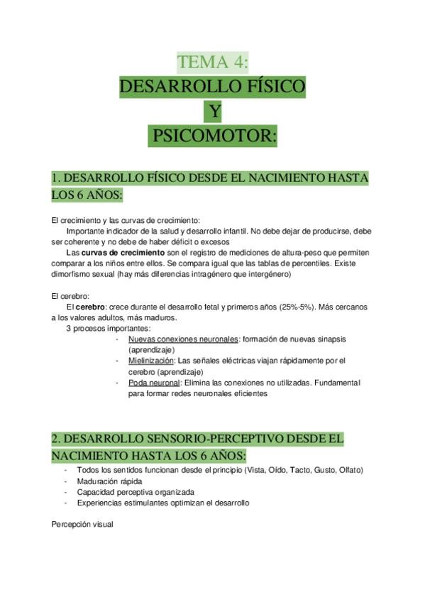 Apuntes del tema 4 de la asignatura "Psicología del desarrollo" impartida por Pilar Ridao.
