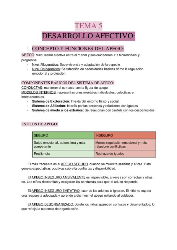 Apuntes del tema 5 de la asignatura "Psicología del desarrollo" impartida por Pilar Ridao.