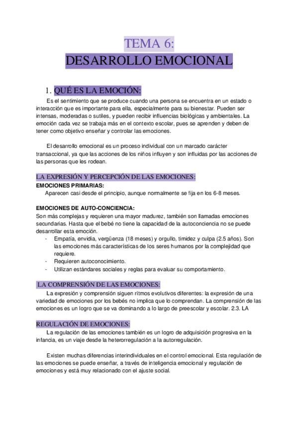 Apuntes del tema 6 de la asignatura "Psicología del desarrollo" impartida por Pilar Ridao.