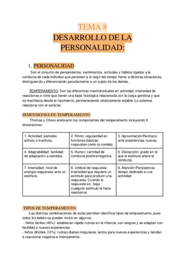 Apuntes del tema 8 de la asignatura "Psicología del desarrollo" impartida por Pilar Ridao.
