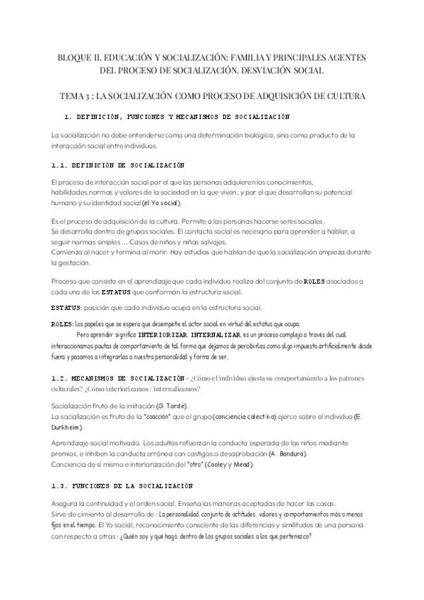 Tema 3. La Socialización como Proceso de Adquisición de Cultura