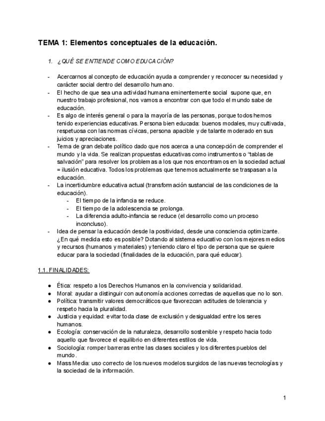 Tema 1 completo de Teoría de la Educación con apuntes completados en clase con las explicaciones del profesor.