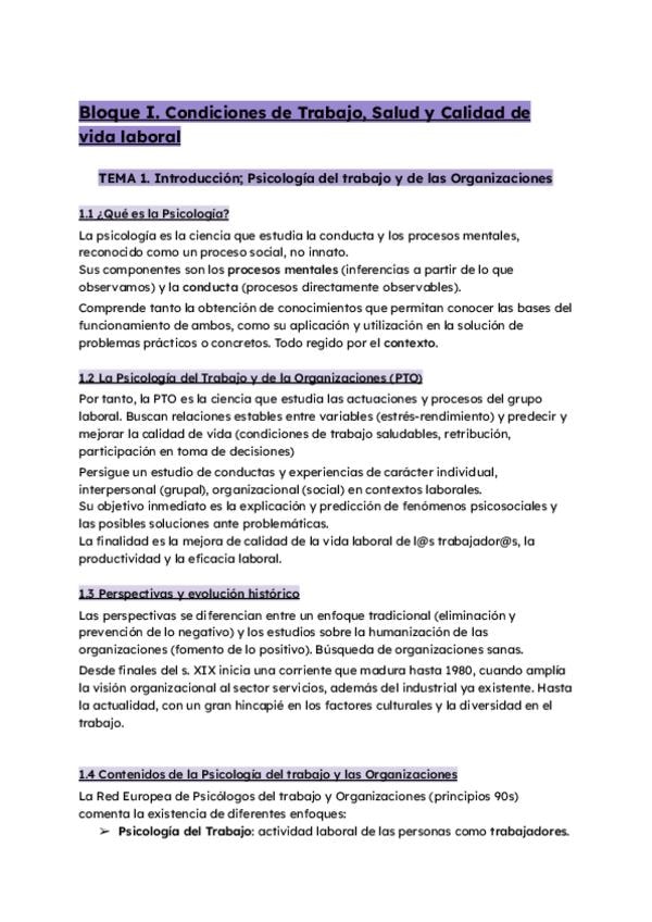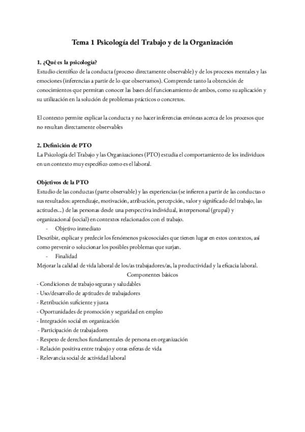 Apuntes Tema 1 Psicología del Trabajo y de las Organizaciones 1 de Carrera
