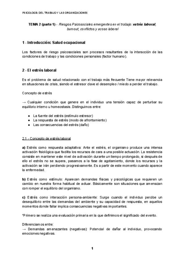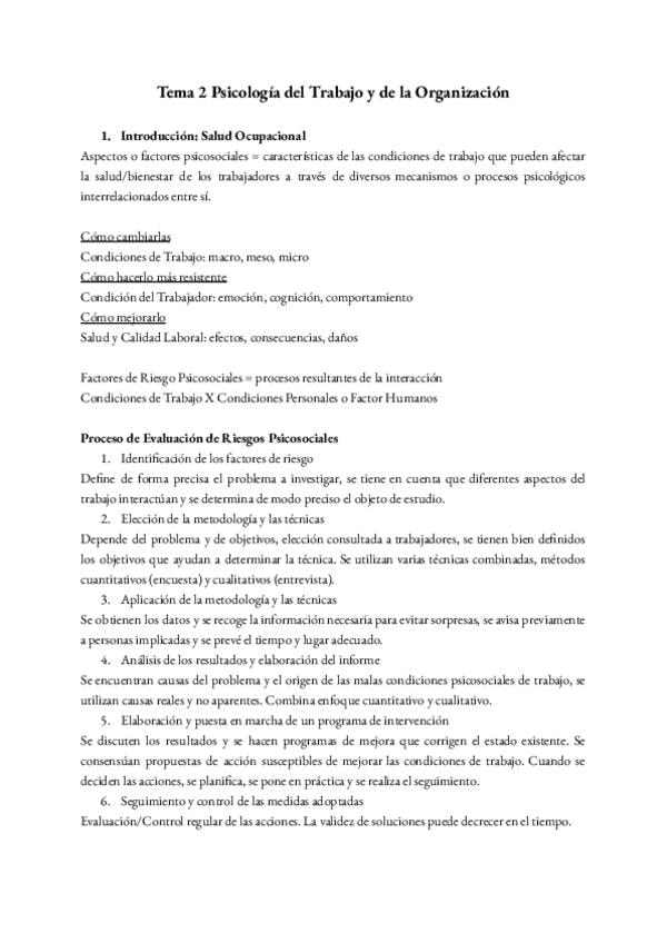 Apuntes tema 2 Psicología del Trabajo y de las Organizaciones 1 Carrera