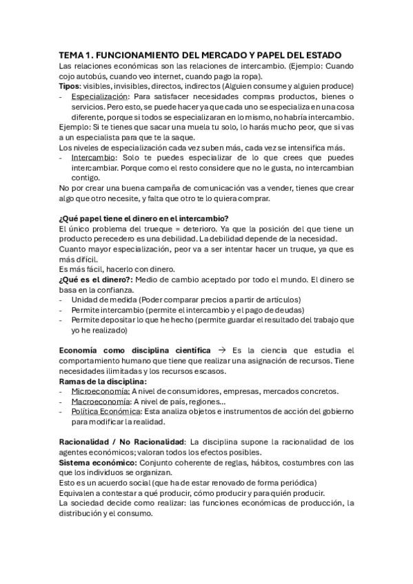Los apuntes corresponden a los temas 1 al 11 de la asignatura de Economía.