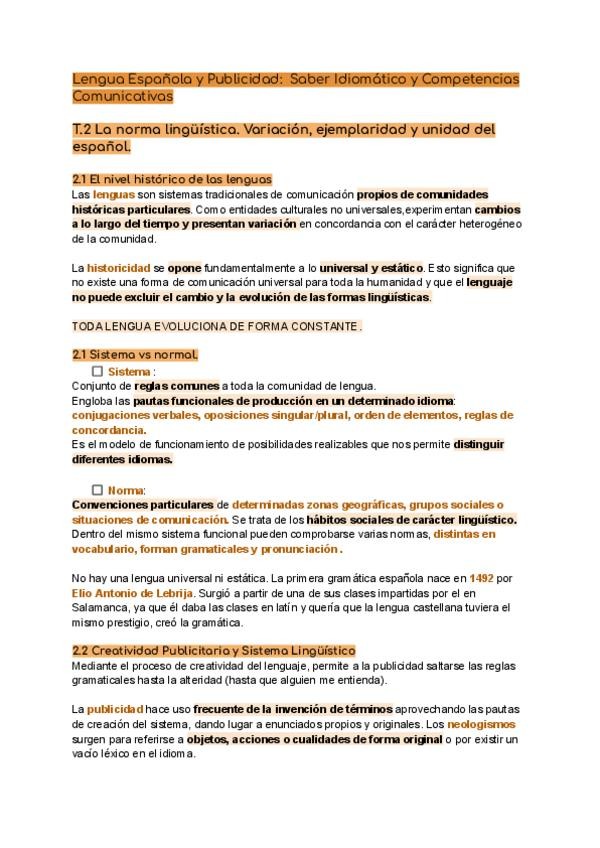 He publicado nuevos apuntes de 1º Lengua Española y Publicidad: Saber Idiomático y Competencias Comunicativas: T.2-La-norma-linguistica.-Variacion-ejemplaridad-y-unidad-del-espanol.pdf