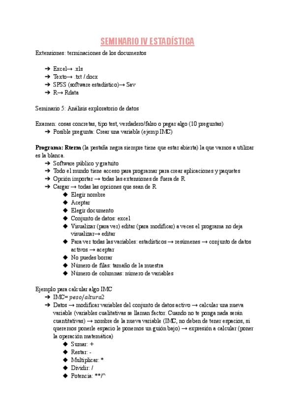 Apuntes tomados en el seminario 4 de estadística, donde hay un tutorial paso a paso de como utilizar el programa Rterm de estadistica. Ire actualizandolo conforme pasen los siguientes seminarios