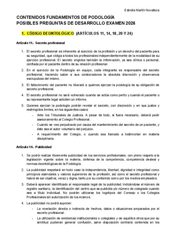 He publicado nuevos examenes de 1º Fundamentos de Podología: CONTENIDOS EXAMEN FUNDAMENTOS DE PODOLOGÍA 2026