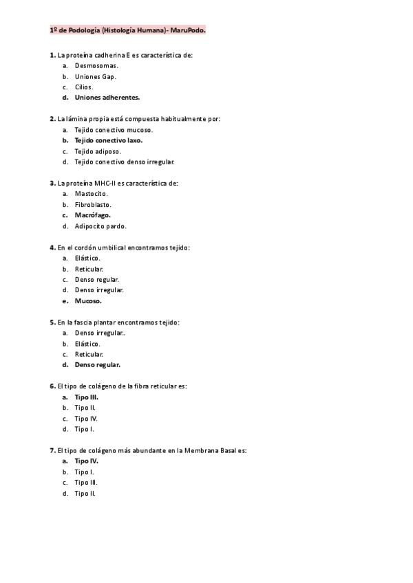 He publicado nuevos examenes de 1º Histología Humana: RECOPILACIÓN PREGUNTAS TIPO TEST EXAMEN HISTOLOGÍA 2026.pdf