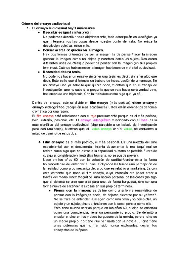 Estos apuntes sirven para hacer el ensayo audivisual final.