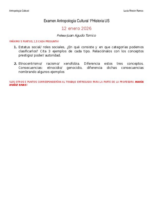 He publicado nuevos examenes de 1º Antropología Cultural: Examen-Antropologia-Cultural-1oHistoria-US.docx