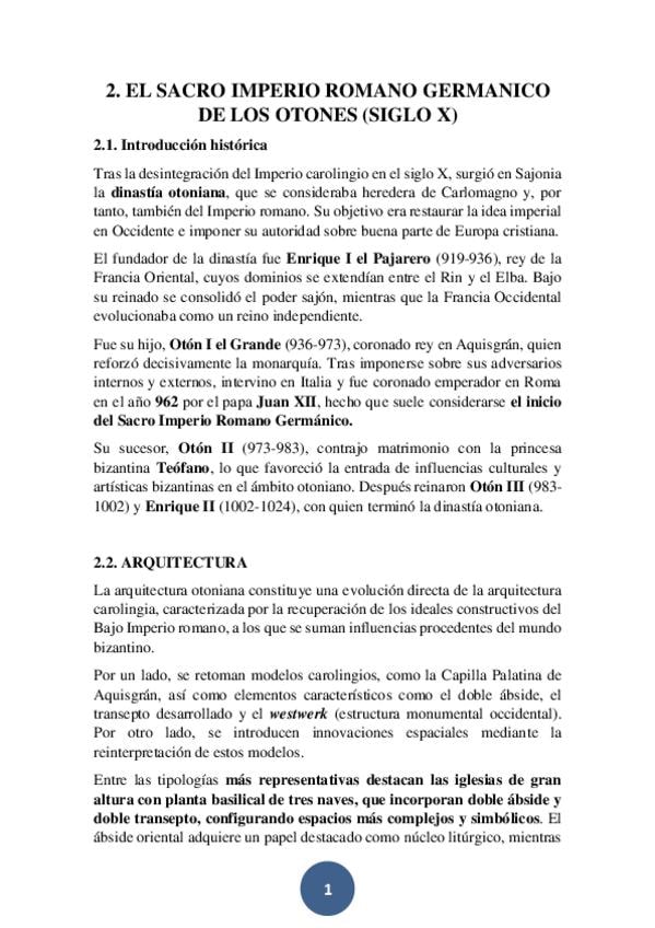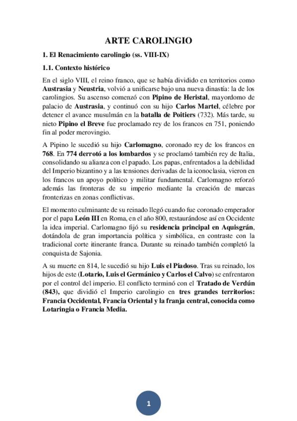 Apuntes bien estructurados, con imágenes a buen tamaño del Tema 6. Divididos en dos partes: arte carolingio y arte otones.