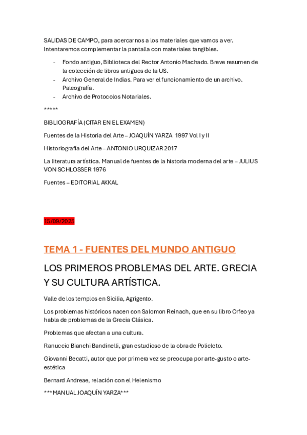 Apuntes de la asignatura completa. A partir de Vasari el profesor no incluye el temario en los exámenes "como norma general".
