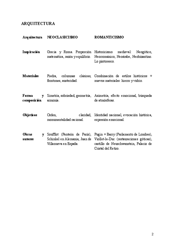 Las he separado por estilos debido al tamaño del documento. Todas las obras han entrado en exámenes + algún añadido destacado
