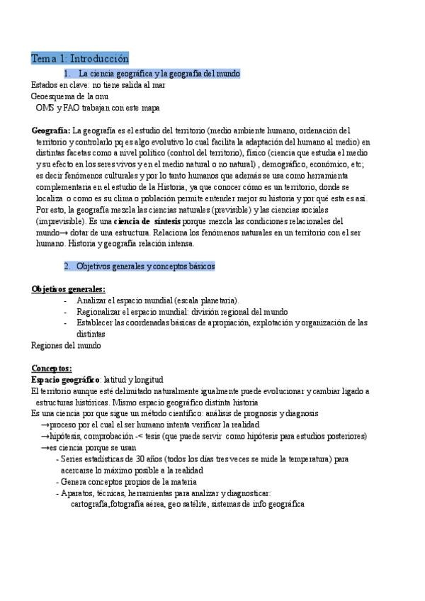 He publicado nuevos apuntes de 1º Geografía del Mundo: Geografía
