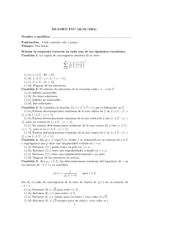 He publicado nuevos examenes de 3º Funciones de Una Variable Compleja: Exámenes FVC Montes